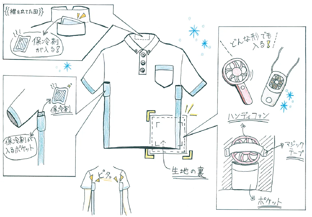 年々暑さ対策をアイデアとした制服のご応募が増えていると実感しますが、地球温暖化による、皆さんの切実な思いが、アイデアとして形になっているようです。