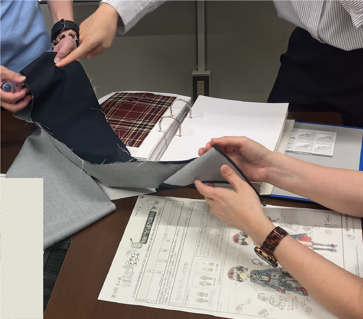 皆さんが描いた制服のデザイン画は、このようにさまざまな工程を経て、初めて「着られる服」になります。