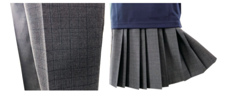 スクールカラーのグリーンを取り入れた素材や校樹の松をモチーフにした松葉模様のワッペンなど伊丹西高校らしさが随所に取り入れられているほか、ジャケットを脱いでも近隣校と被らないようにシャツの細部までこだった制服となりました。