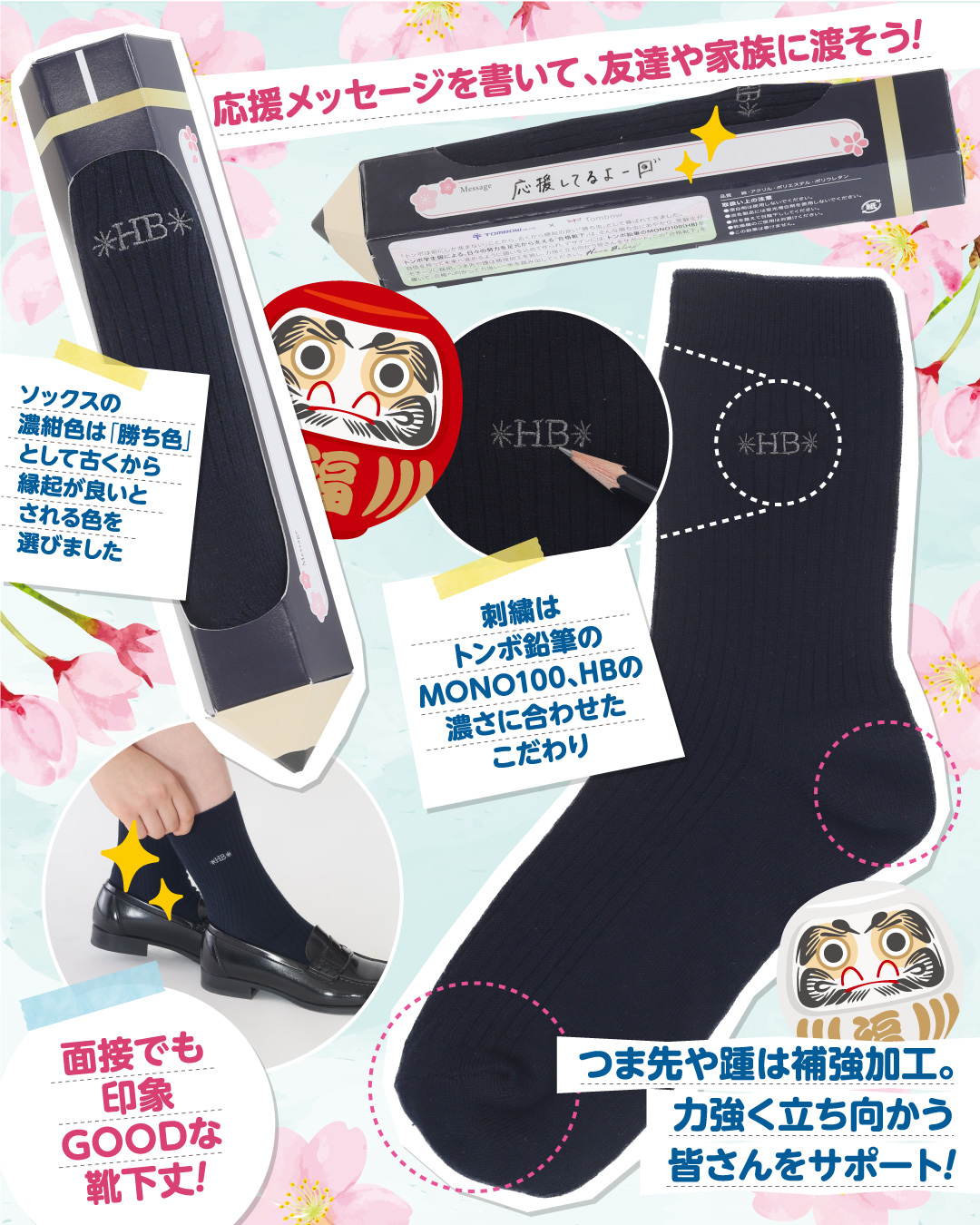 トンボ学生服からは、鉛筆型パッケージのスクールソックス!